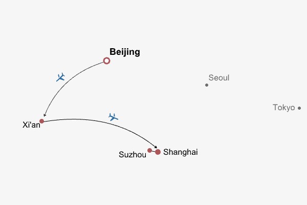 Attention: For 2026 & 2027 tours, we will arrange the high-speed train from Beijing to Xian instead of flight. The duration is around 4.5 to 5.5 hours. It is a good opportunity to experience China's fast-growing high-speed rail.
