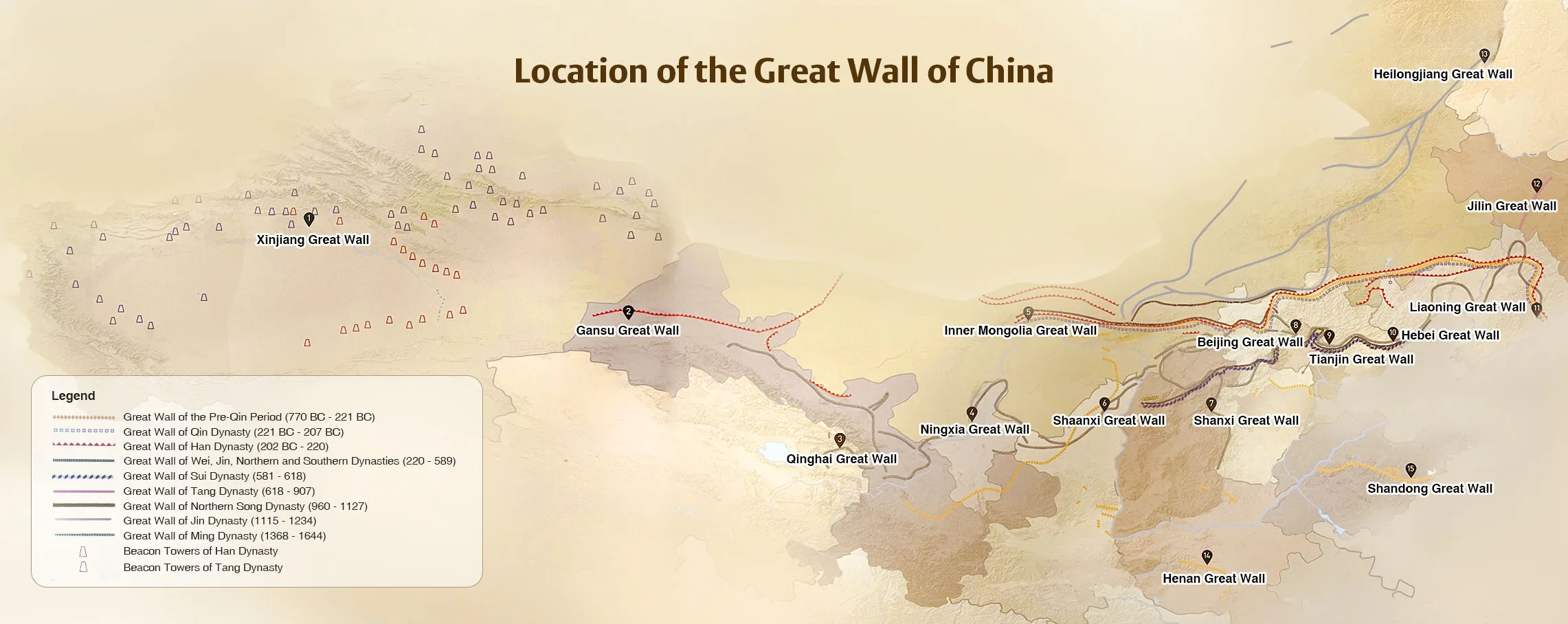 Han Dynasty (202 BC - 220), it was further expanded and extended westward to Xinjiang. Subsequent dynasties made smaller-scale constructions, until the