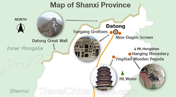 If you only have one full day, then the World Cultural Heritage site - Yungang Grottoes and the Hanging Monastery which is 1 hour and 10 minutes' drive from Datong, should not be missed. For travelers who plan a two-day tour, in addition to the above-mentioned scenic spots, the Huayan Monastery and Nine-Dragon Screen in downtown are worth visiting as well. Meanwhile, you are also recommended to spend half a day exploring the wild Great Wall in the suburbs of the city.