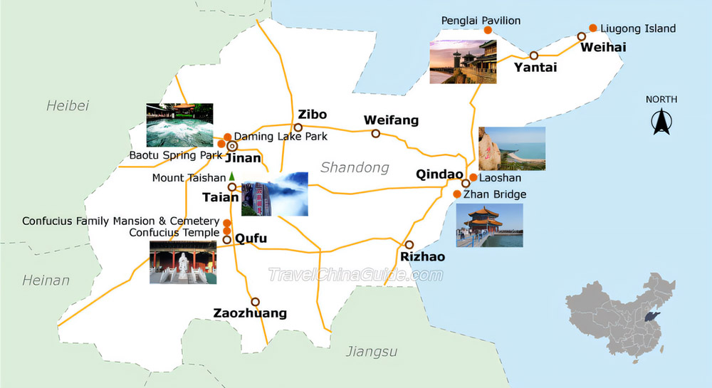 Shandong province is situated on the eastern coast of China. Along its 3,000 kilometers coastline sits four seaside cities - Qingdao, Yantai, Weihai and Rizhao. After the cultural experiences in Qufu and Taishan, you can extend your Shandong tour package to these coastal cities for a leisure trip. At the summer resort Qingdao, you can either spend your time on Mt. Laoshan, a famous Taoist mountain, or visit Qingdao seaside scenic spots including Zhan Bridge, May 4th Square, Badaguan, etc. Moreover, Penglai Pavilion Scenic Area in Yantai, Liugong Island in Weihai and the Beach Resort in Rizhao are also good places for a summer vacation in Shandong. If you are interested, please contact our travel consultant freely. We will be glad to provide you with a customized Shandong tour based on your requirements.
