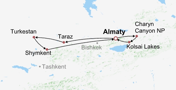 With countless Islamic architectures hinting at a culture of great splendor, crumbling ruins reputed to remind visitors of the ancient Silk Road, and distinct customs with exotic charm, Kazakhstan has long captured travelers’ imagination as the essence of Central Asian travel by blending many characteristic mosques and impressive landscapes. So if you plan to spend 7-10 days there, you can choose from our itineraries focused on Kazakhstan, which include visiting Almaty and its surrounding national parks, traveling between the capital Astana and Almaty, or exploring Almaty and three other ancient cities: Taraz, Shymkent, and Turkestan.