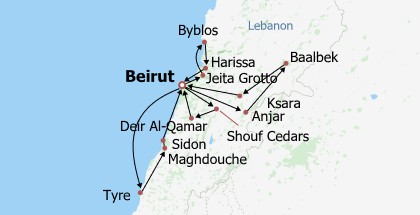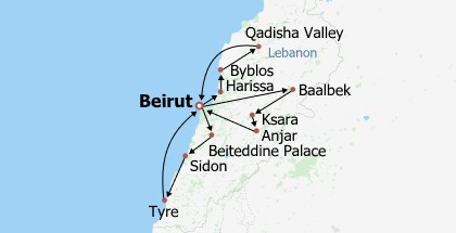 Lebanon is not big in size, but rich in tourism resources. For first time travelers, if you have 4 to 5 days, you may visit the capital city of Beirut, the Roman ruins of the temples of Baalbek, the Phoenician cities of Sidon and Tyre or the oldest continuously inhabited city of Byblos. If you have 6 to 8 days, you can also add Qadisha Valley, Deir Al-Qamar old town and Beiteddine Palace. If you have more than 9 days, you may consider to add Tripoli to cover most of Lebanon's tourist destinations in your Lebanon tour packages.